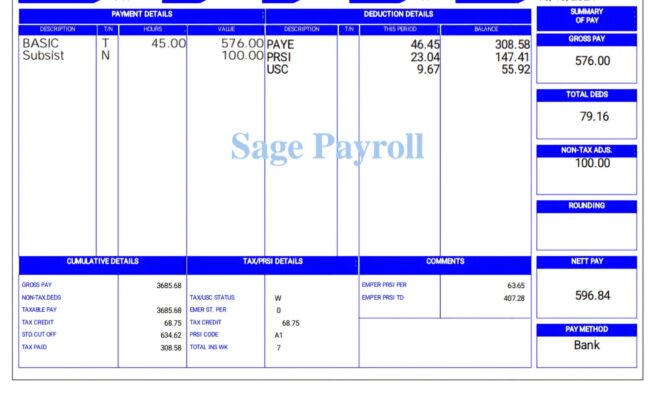 - Reveja as Deduções: Certifique-se de que os valores para PAYE, PRSI e USC estão corretos com base em sua faixa salarial.