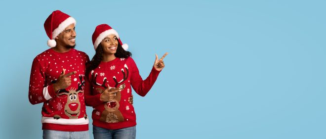 Christmas Jumpers, os famosos suéters de Natal, são protagonistas do Natal na Irlanda. Fotos: Envato