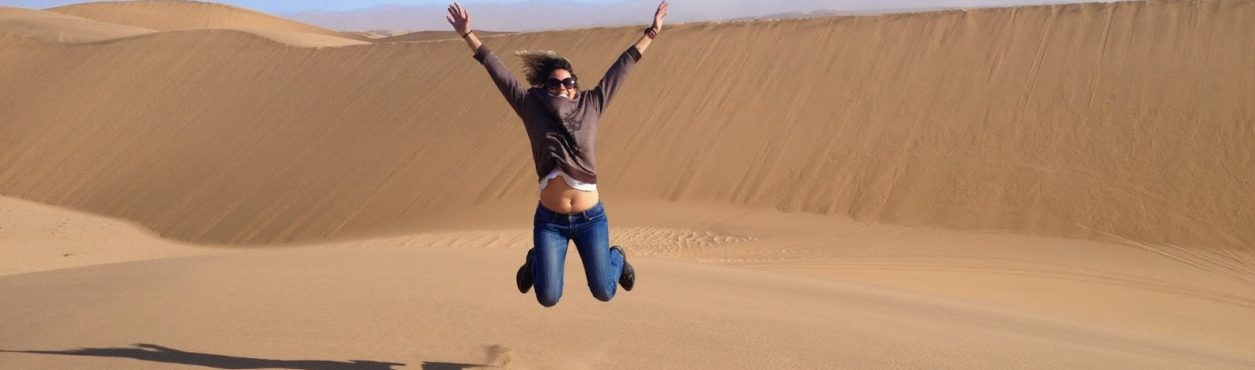 Gabriela de braços abertos para a vida no Deserto da Namíbia. Foto: Arquivo Pessoal